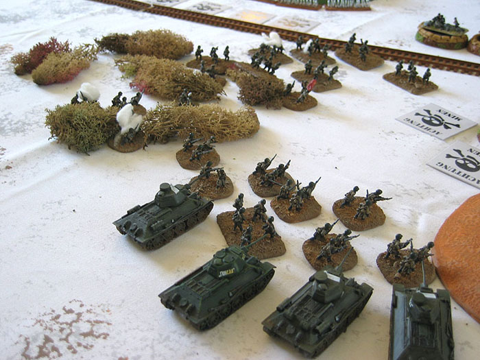L'infanterie russe est à peine ralentie par les champs de mines.
