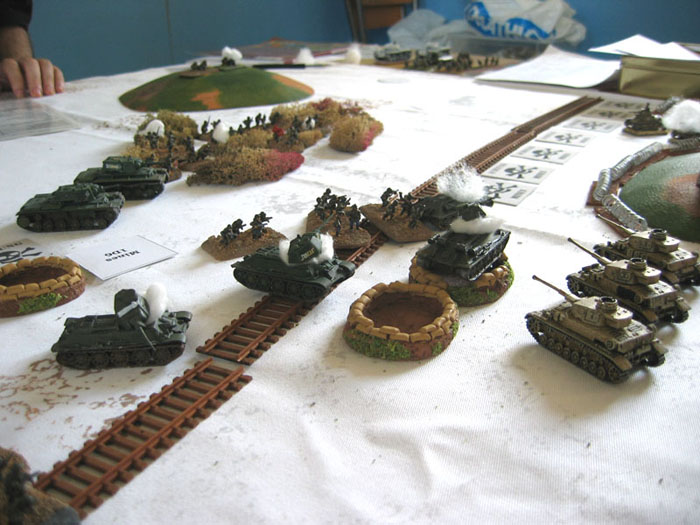Les renforts allemands au secours des italiens : plusieurs T34 sont détruits.